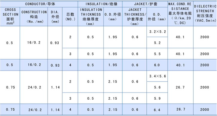 4.导体使用绞合:0.5-0.75 裸铜或镀锡